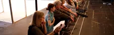 An den Seiten der Bühne stehen Bänke. Dieser Bereich ist für die Menschen gedacht, die keine Profis sind. Dort bereiten sie sich auf ihren Auftritt vor. Sie ziehen sich dort um oder suchen ihre Gegenstände. Es ist wie ein Warte-Bereich.