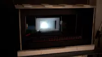 In den Rahmen an der Seite haben wir LED-Streifen eingebaut. Sie machen weißes Licht für mehr Helligkeit im Raum. Oben hängen spezielle Astera-Röhren. Damit können wir den Raum farbig machen. So setzen wir Akzente und sorgen dafür, dass die Bühne nicht nur in Gelb und Weiß leuchtet, sondern viele Farben hat.