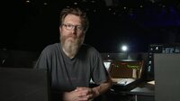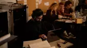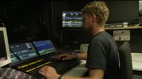Er erklärt die Arbeit der Ton- und Videoabteilung.