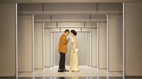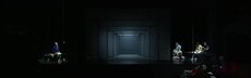 Die Bühnen-Teile haben Rahmen aus Metall. Sie sind mit einer hellen Folie bespannt. Man kann sie von hinten beleuchten. Die Bühne soll an die Barock-Zeit erinnern. Aber durch das moderne Material wirkt alles viel leichter und einfacher.