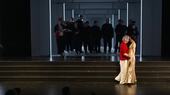 Ich finde es wichtig, dass die Menschen in ihren Kostümen echt aussehen. Sie tragen im Stück schicke Kleidung wie Anzüge oder Abendkleider. Viele haben so etwas vorher noch nie getragen. Sie sehen darin toll aus, aber sie wirken nicht verkleidet. Das Kostüm soll die Person unterstützen und nicht verstecken. Man soll die echten Menschen unter der Kleidung immer noch erkennen. Ich erzähle mit der Kleidung Geschichten. Es ist mir gut gelungen, dass die Darsteller viel Raum für sich haben.
