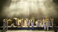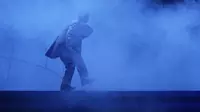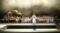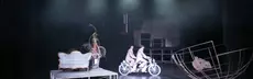 Die Werbewand auf der Bühne steht symbolisch für unsere vergangene Zivilisation und die Hoffnung auf eine bessere Zukunft.