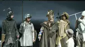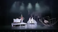 So unterschiedlich wie die jungen Menschen sind, so verschieden und besonders sind auch ihre Texte, weswegen es sich auch anbot, die einzelnen Szenen des Abends, ganz unterschiedlich auszustatten. Generell kommen die Zeitreisenden in ihrem Grundkostüm in Situationen, in der sie ihren selbstgeschriebenen Figuren – zum Beispiel Rittern, sprechenden Tieren oder sich selbst – begegnen.