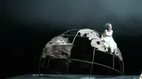 Die Weltkugelteile auf der Bühne symbolisieren unseren Planeten. Sie liegen in einem Raum, der losgelöst von Ort und Zeit ist. Sowohl das Ensemble als auch das Publikum betrachten und erkunden sie. Im Verlauf des Stücks setzen wir diese Weltkugel auch wieder zusammen.